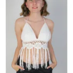 Our Mercerized Hand Knitted Bustier is knitted with Alize brand Diva mercerized yarn.